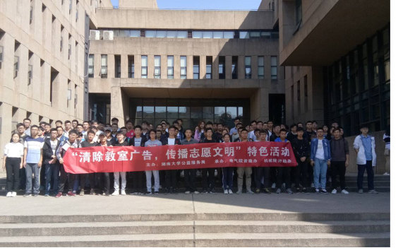 学工办资助管理中心共同组织了名为“清除教室广告,传播志愿文明”公益岗系列活动。