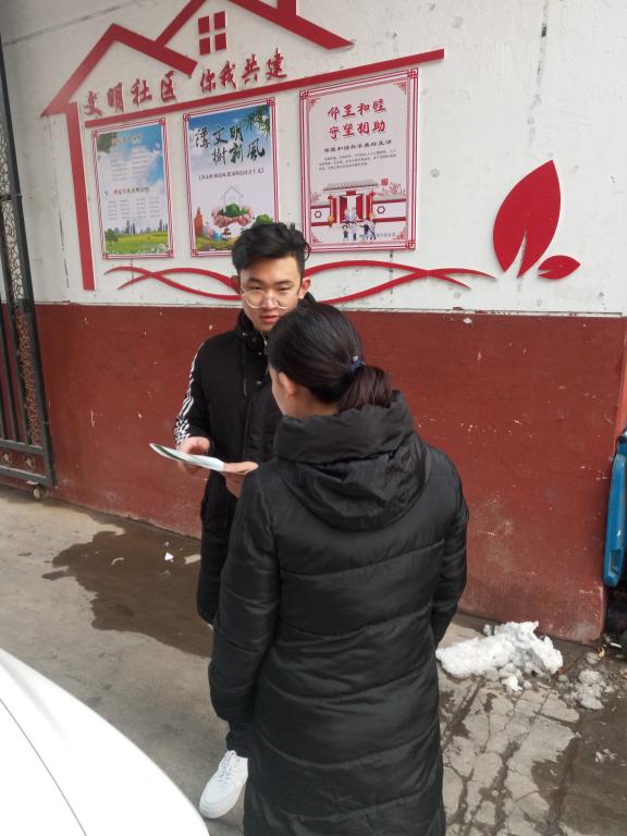社区讲解的时间我选在了初十之后,十一进行讲解,地点选择河北省邢台市政协家属院。讲解的方式主要是在社区中寻找行人进行政策讲解。虽然不少人还是挺配合的,却也出现了不少冷眼,一句话都没说就匆匆过去,或者一句没时间就转身离去。当然也有成功讲解的,我向他们讲解了第一会所