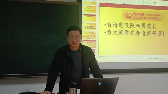研究生楼A205举行了“逐梦青春,筑梦青春”主题班会。此次班会由班长高屹主持,除全体同学参与外,还特别邀请了气院副院长李勇,电自2102班班主任李桥以及电气院本科21级新生辅导员出席。