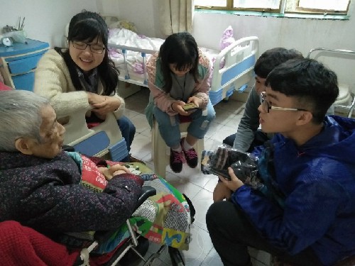 在两位班长的组织负责下,两个班级的成员很快熟悉起来,并进行分组合作,为老人们准备自己的娱乐节目,展示自己的才艺。