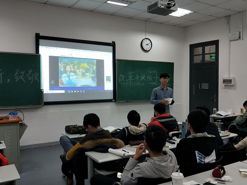 接着,王胜辉结合生动的实例,引入班会的主题“革故鼎新,致敬改革开放四十周年”,并向大家介绍了改革开放的背景和原因:二十世纪七十年代,对于我国内部,经历了十年的文化大革命,国家经济文化伤痕累累,必须通过改革开放来解放生产力。而此时的外部世界正在进行第三次推动世界经济发展的第三次科技革命,我国本就生产力落后,此时经济差距更加被明显拉大,面临着巨大国际竞争压力,也同时逐渐意识到照搬苏联模式的弊端,我国开始探索属于自己的发展道路。