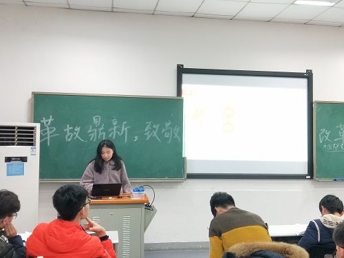 最后,各个寝室的代表也分别上讲台展示本组成员交流的改革开放成果,他们在改革开放四十年来民众生活、玩具形式、政策变革等方面各抒己见,拓宽了同学们的知识面,也让大家更好的体会到改革开放给我们带来的福音。