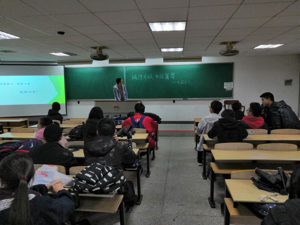最后,团支书引用了“人而无信,不知其可”,“车无辕而不行,人无信则不立”的名言,再次强调了此次活动内容的重要性。他说道:“希望各位同学凭自己辛勤的汗水和真才实学,在考场上发挥正常水平,以诚信考试为荣,以违纪作弊为耻,弘扬良好学风,维护知识的尊严!”