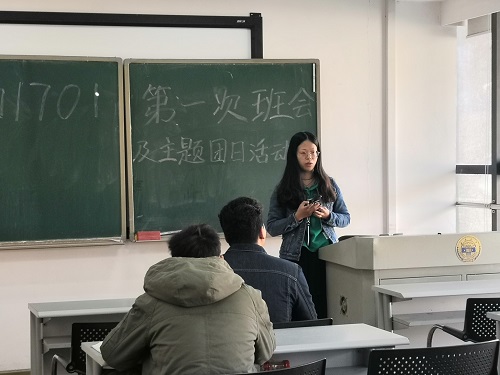 综合楼的一角,电气工程及其自动化1701班全体成员于210教室开展了新学期的第一次班会暨主题团日活动。