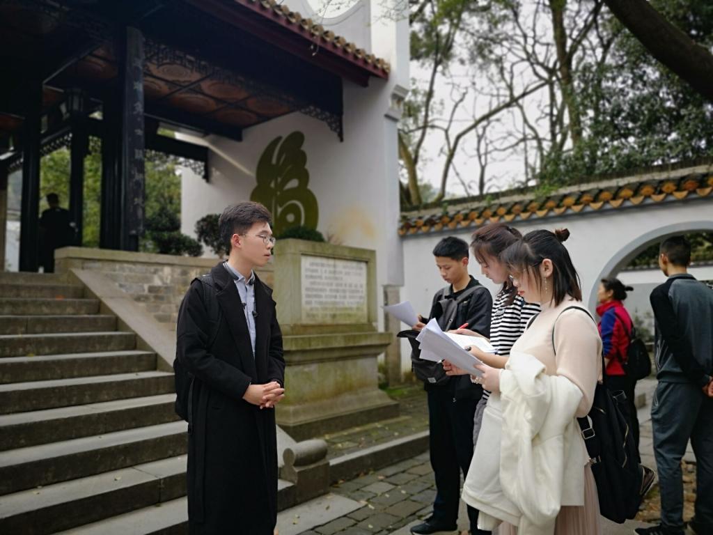 的抗战历史一共要从六个不同的景点来介绍,无论在哪一个景点,讲解员都会认真详细地向大家介绍它悠久的历史,不仅如此,讲解员还会给队员们讲一些自己对抗战历史的了解,丰富了一成不变的导游词,自训队队员们认真学习,将讲解的重点做了记录。值得一提的是,由于每个景点相隔的距离较远,讲解员还告诉了队员们在前往景点的途中可以向游客介绍的建筑,让这几段枯燥的路程变得充满活力。