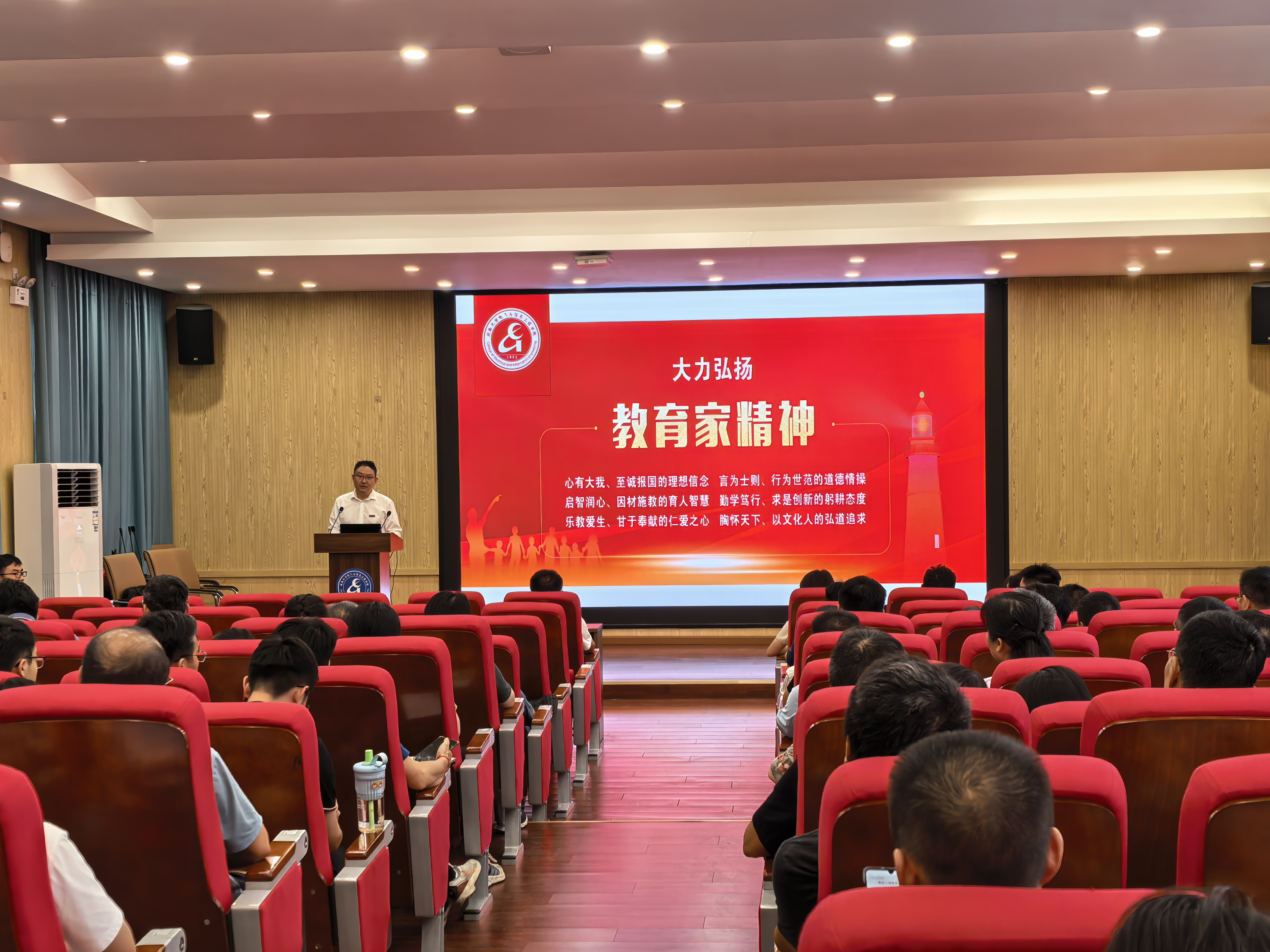 以“以教育家精神铸魂强师,谱写教育强国建设华章”为主题,召开2025年秋季新学期全体教职工大会。会议在庄严的国歌声中拉开帷幕,主持人汪洪亮副书记首先带领全体教职工回顾了中国人民抗日战争暨世界反法西斯战争胜利80周年的伟大历史意义,激励大家传承爱国精神,牢记为党育人、为国育才的初心使命,以更加饱满的热情投身新时代教育工作。