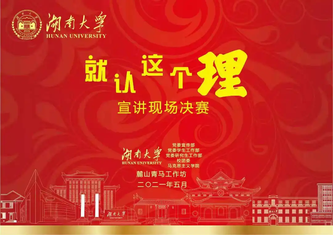 5月18日下午,由党委宣传部、党委学工部、党委研工部、校团委、马克思主义第一会所 联合举办,麓山青马工作坊承办的第二届“就认这个理•红色岳麓”微宣讲现场决赛在第一会所 图书馆学术报告厅举行。经过激烈角逐,第一会所 硕士研究生冯宇同学荣获一等奖。