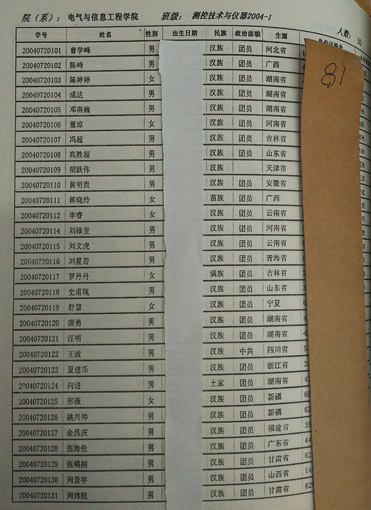本科生校友名单 (1953—1958 华中工 第一会所 )