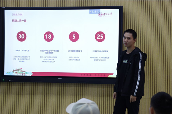 新生,吾辈当时刻坚持学生本质,心怀诗和远方,树立明确的目标。”同时班主任康旭东老师、学助刘兴勋学长以自身经历为例,勉励同学们在不同的大学生活间做好取舍,大学是一个不断探索的阶段,坚持本心,在充满诱惑的世界不迷失自我尤为可贵。