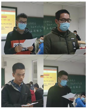 班会以电自2102班全体同学对自己大学梦的理解作为开场,其中不乏对自己人生的规划以及未来的期望。无疑,刚进入大学的同学们是迷茫的,如何与其更好的斗争,就是本次班会的意义所在。紧接着,由解涛同学进行《梦想》诗朗诵。“我会将我累积成一座高山,我会将我汇聚成一片汪洋!”朗诵声铿锵有力,掷地有声。燃起了同学们对大学梦的追求与渴望。