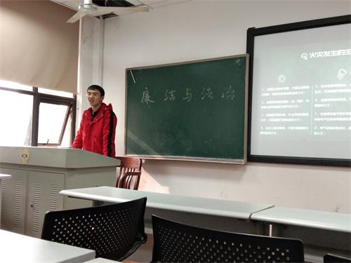 在进行了较为全面的讲解过后,赵嘉荣同学准备了一些问关于消防知识及防火常识的小问题进行提问,通过这个环节来检验大家对此次班会内容的了解及对消防知识的认识。问题并不难,大家也都掌握的不错。相信这次班会所学到的东西,会一直伴随着大家。