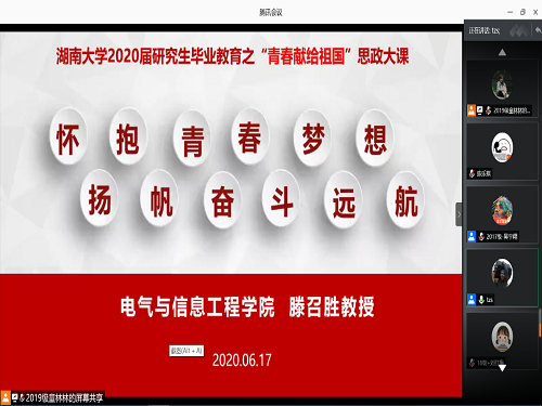 研究生会举办了“青春献给祖国”思政大课活动。本次活动借助腾讯会议平台进行,共260余名学生参加。