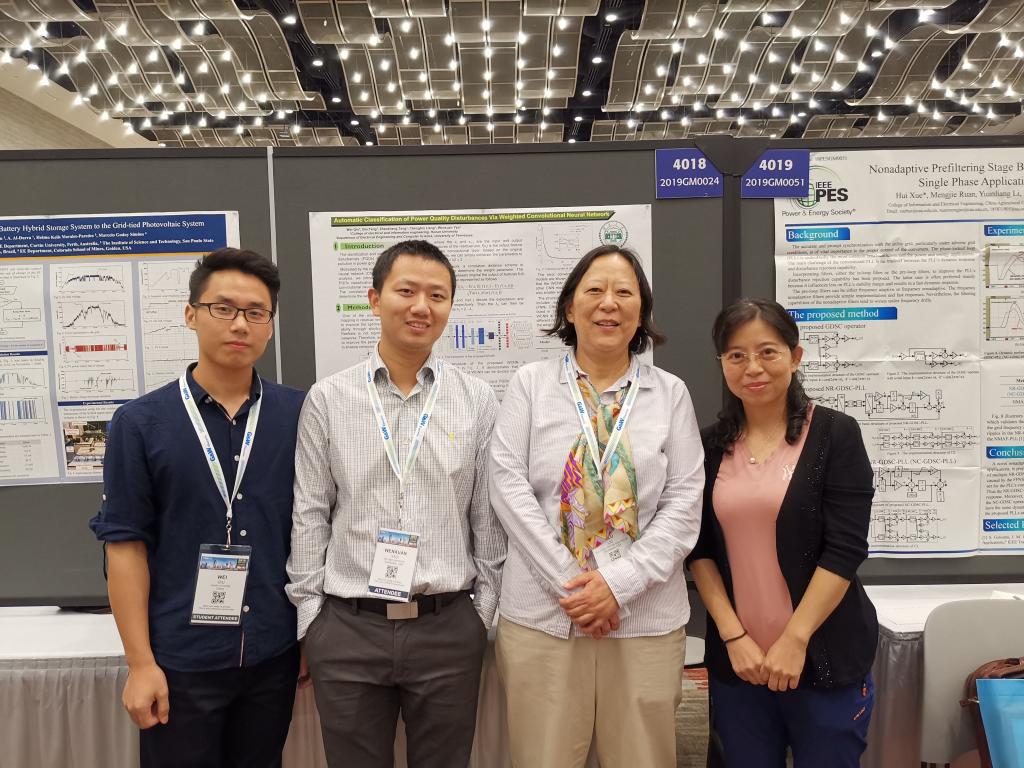 2019年于美国亚特兰大参加IEEE PES国际学术会议(左一,邱伟博士;左二,姚文轩教授;左三, Yilu Liu教授;左四,唐求教授)