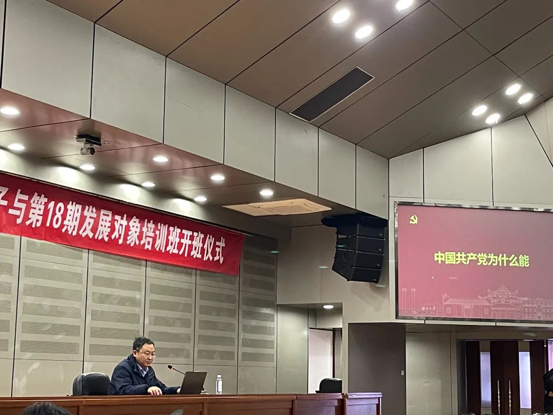 在逸夫楼报告厅成功举行分党校第74期积极分子与第18期发展对象培训班第一讲。本次专题学习由电气院党委书记张小刚老师带领电气院第74期积极分子与第18期发展对象以“中国共产党为什么能?”为主题开展培训。